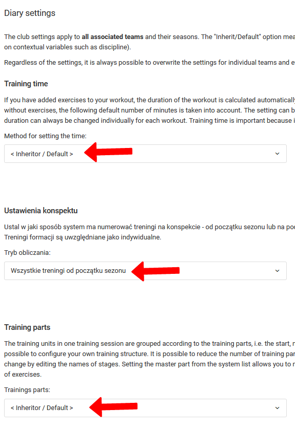 Les paramètres du journal ont un impact direct sur certains paramètres globaux, que vous pouvez définir comme paramètres de journal par défaut en tant que gestionnaire. Naturellement, les entraîneurs ont dans de nombreux cas le choix d'hériter des paramètres globaux d'une entité ou de définir certains éléments individuellement.